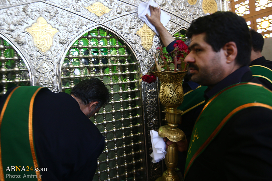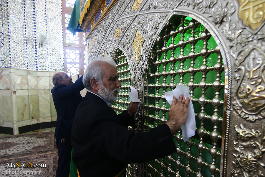 به گزارش خبرگزاری اهل بیت(ع) ـ ابنا ـ خادمان حرم حضرت معصومه(س) به مناسبت روز بزرگداشت امامزادگان با حضور در حرم امامزاده موسی مبرقع(ع) ضریح این امامزاده را غبارروبی کردند.