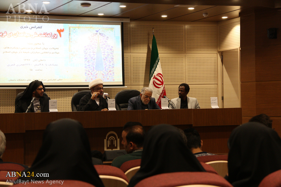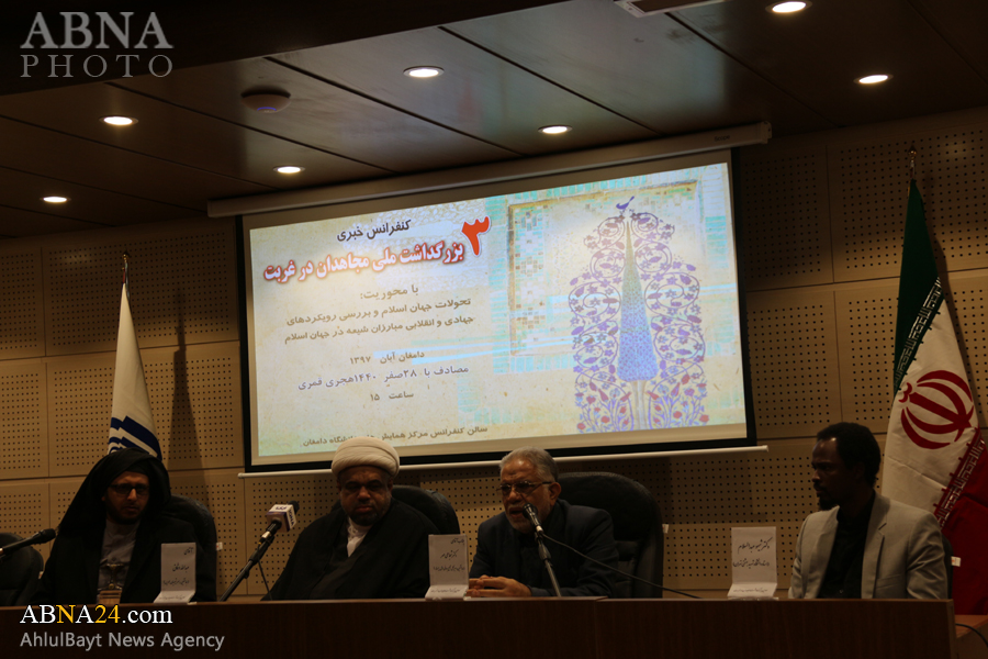 به گزارش خبرگزاری اهل بیت(ع) ـ ابنا ـ نشست خبری سومین بزرگداشت "مجاهدان در غربت" با مشارکت مجمع جهانی اهل بیت(ع) در سالن همایش های دانشگاه دامغان برگزار شد. در این نشست، حجت الاسلام و المسلمین «عبدالله الدقاق» از بحرین و نماینده آیت الله شیخ «عیسی قاسم» در ایران، دکتر «شجاعی فر» نماینده حجت الاسلام شیخ «ابراهیم زکزکی» از نیجریه و حجت الاسلام «سید حسن علی العماد» از یمن به ایراد سخن پرداختند.