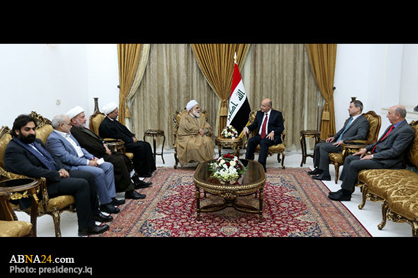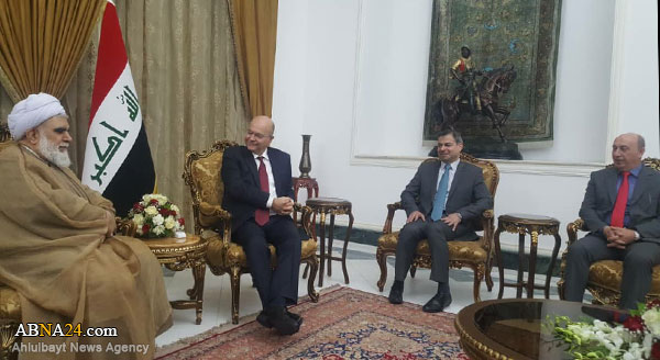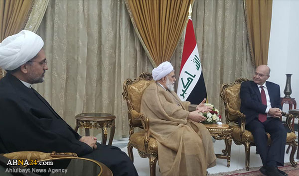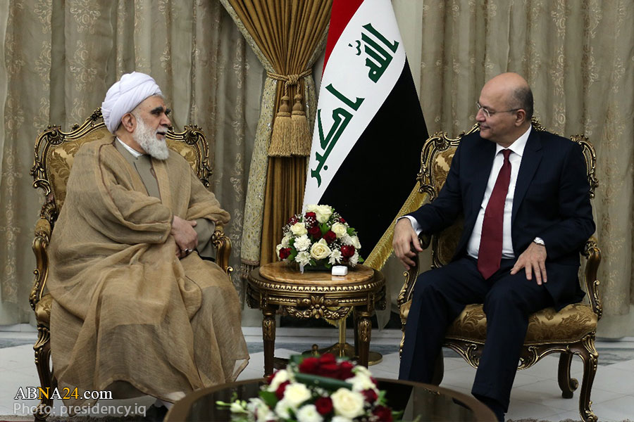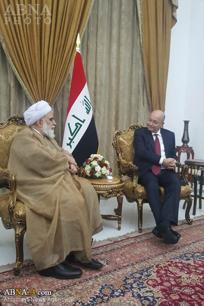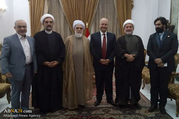 به گزارش خبرگزاری اهل‌بیت(ع) ـ ابنا ـ حجت الاسلام والمسلمین «محمدحسن اختری» دبیرکل مجمع جهانی اهل بیت(ع) امروز پنجشنبه 9 اسفند 1397 در بغداد با دکتر «برهم صالح» رییس جمهوری عراق دیدار و گفتگو کرد. طرفین در این دیدار بر اهميت تحکیم روابط بين مسلمين و مقابله با تفکرات افراطی تکفیری تأکید کردند. آنها همچنین بر تبعیت از خط مرجعیت و استمرار اندیشه وحدت اسلامی که مصلحت و منفعت اسلام و مسلمانان را در پی دارد پای فشردند. آقای «حسن خاکرند» سرپرست معاونت بین الملل مجمع، حجت الاسلام والمسلمین «پهلوان زاده بهبهانی» مدیر مجمع اهل بیت(ع) عراق و حجت الاسلام والمسلمین «غلامرضا اباذری» رایزن فرهنگی ایران در عراق، دبیرکل را در این دیدار همراهی کردند.