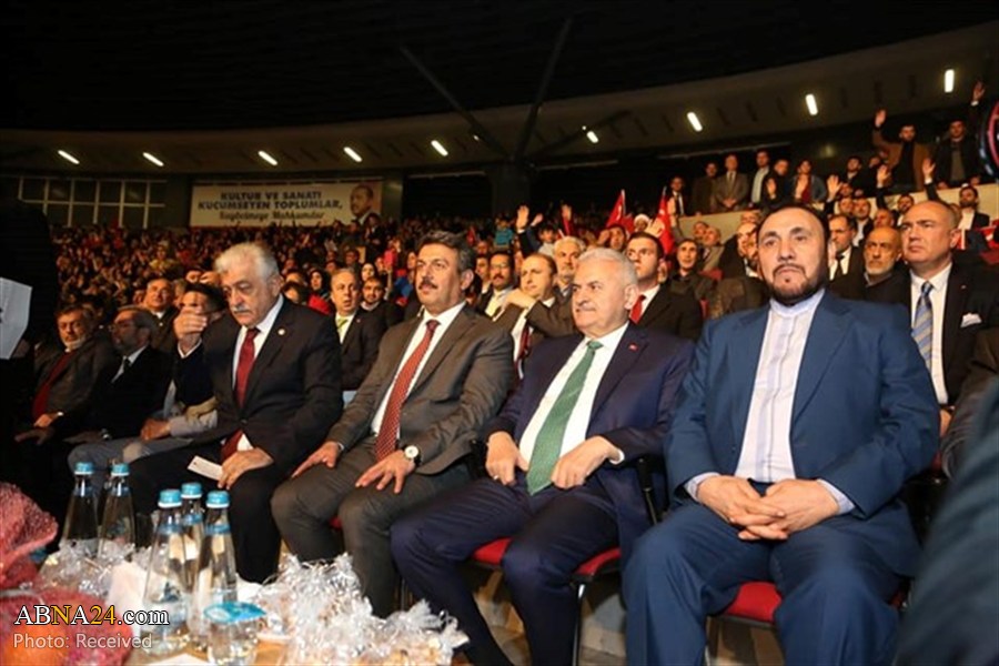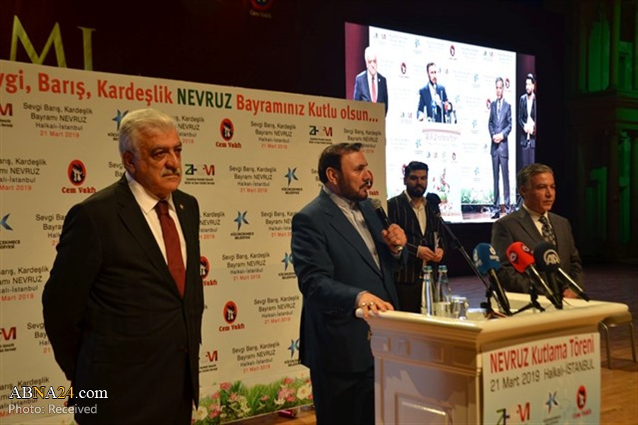 به گزارش خبرگزاری اهل بیت(ع) ـ به همت جوانان زینبیه ترکیه، مراسم جشن میلاد حضرت علی(ع) و عید نوروز در میدان هالکالی و در مرکز فرهنگی یحیی کمال بیاتلی شهر استانبول برگزار شد. در این مراسم شیخ «صلاح الدین اوزگوندوز» عضو مجمع عمومی مجمع جهانی اهل بیت(ع)، «بن علی یلدریم» کاندیدای شهرداری استانبول از حزب عدالت و توسعه (AKP) و رئیس مجلس سابق ترکیه، «اکرم امام اوغلو» کاندیدای شهرداری استانبول از حزب جمهوری خلق ترکیه (CHP)، «شامیل آیرام» نماینده مجلس ترکیه از شهر استانبول، «هارون کایا» معاون شهردار منطقه کوچک چکمجه، «تمل کارادنیز» شهردار منطقه کوچک چکمجه و مسئولان دیگر و جمع زیادی از شیعیان و محبان اهل بیت(ع) حاضر شدند. در این مراسم علاوه بر شیخ «صلاح الدین اوزگوندوز»، برخی از مسئولان ترکیه از جمله «بن علی یلدریم» و «اکرم امام اوغلو» کاندیداهای شهرداری استانبول، درباره اهمیت عید نوروز در فرهنگ و آداب و رسوم ترکیه و منطقه، و ولادت حضرت علی(ع) سخنرانی کردند.