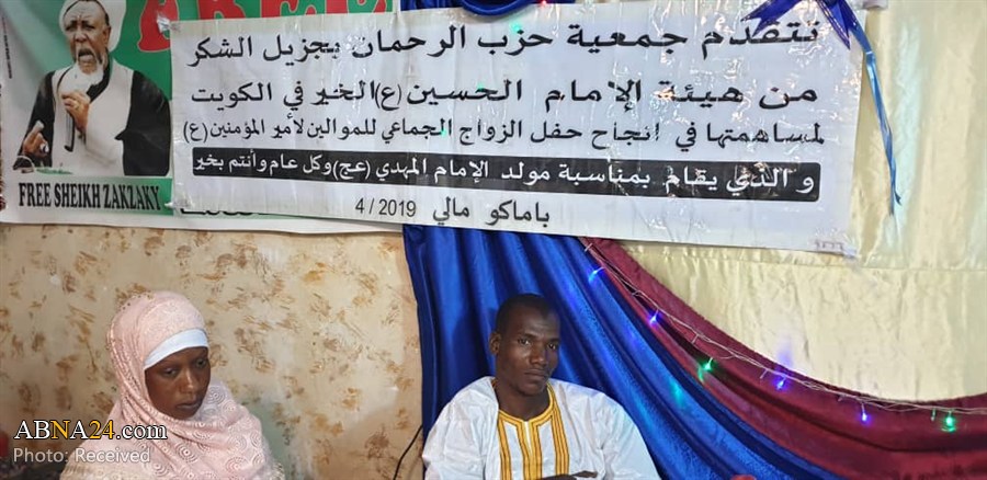 به گزارش خبرگزاری اهل بیت(ع) ـ ابنا ـ در ایام نیمه شعبان و سالروز ولادت امام زمان(عج) به همت جمعیت "حزب الرحمن" به سرپرستی «سيد محمد شؤولة حيدرة» و با مشارکت هیئت خیریه امام حسین(ع) دولت کویت، جشن ازدواج گروهی باشکوه جمعی از شیعیان در حسینیه حضرت معصومه(س) در شهر باماکو در کشور مالی برگزار شد. در این مراسم سخنرانان درباره نیمه شعبان و ولادت امام زمان(عج) و ازدواج از دیدگاه اهل بیت(ع) بیاناتی ایراد کردند و پس از آن عقد ازدواج دادماها و عروس های حاضر در مراسم قرائت شد.