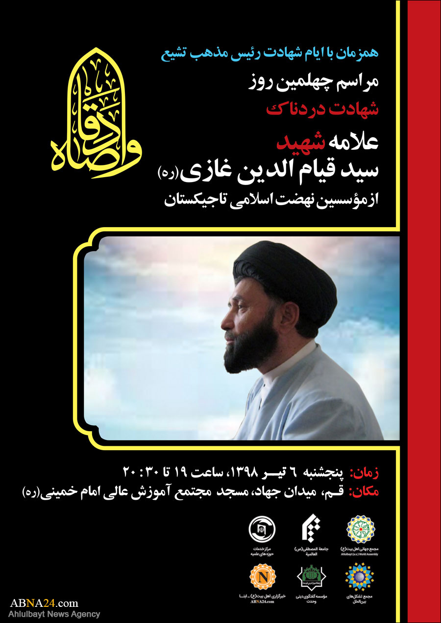 به گزارش خبرگزاری اهلبیت(ع) ـ ابنا ـ همزمان با ایام شهادت رئیس مذهب تشیع حضرت امام جعفر صادق(ع)، مراسم چهلمین روز شهادت دردناک علامه شهید حجت الاسلام والمسلمین «سید قیام الدین غازی» با حضور علماء، فضلا و طلاب خارجی در مسجد مجتمع آموزش عالی امام خمینی(ره) قم برگزار شد. این مراسم به همت مجمع جهانی اهل بیت(ع) و با همکاری نهادهای همسو برپا گردید و پس از قرائت قرآن با نوای آقای «غفاری» و مرثیه سرایی آقای «مجتبی خرسندی»، حجت الاسلام والمسلمین دکتر «علیرضا ایمانی مقدم» معاون فرهنگی مجمع به ایراد سخن پرداخت.