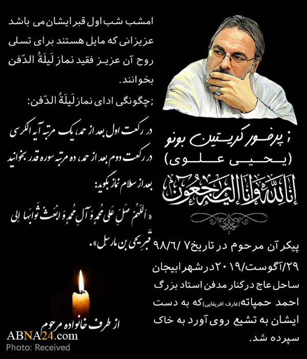 به گزارش خبرگزاری اهل بیت(ع) ـ ابنا ـ علی رغم تلاش های زیاد در چند روز گذشته، انتقال پیکر مرحوم دکتر «یحیی علوی بونو» به ایران میسر نشد و پیکر پاک او در قبرستان مسلمانان شهر آبیجان (Abidjan) پایتخت ساحل عاج تشییع و به خاک سپرده شد. در مراسم تشییع و خاکسپاری وی، همسر او و نیز دهها تن از شیعیان و محبان اهل بیت(ع) حضور داشتند و پیکر مرحوم بونو در کنار مزار مرحوم «احمد حمپاته» آرام گرفت. حمپاته، عارفی آفریقایی بود که بونو تحت تأثیر او به مذهب تشیع مشرف گردید. دکتر یحیی بونو اندیشمند برجسته و عضو فرانسوی مجمع جهانی اهل بیت(ع) که برای انجام برنامه تبلیغی ماه محرم عازم قاره آفریقا شده بود، متأسفانه روز دوشنبه 4 شهریور 1398 در کشور "ساحل عاج" دچار حادثه ای دریایی گردید و دار فانی را وداع گفت.