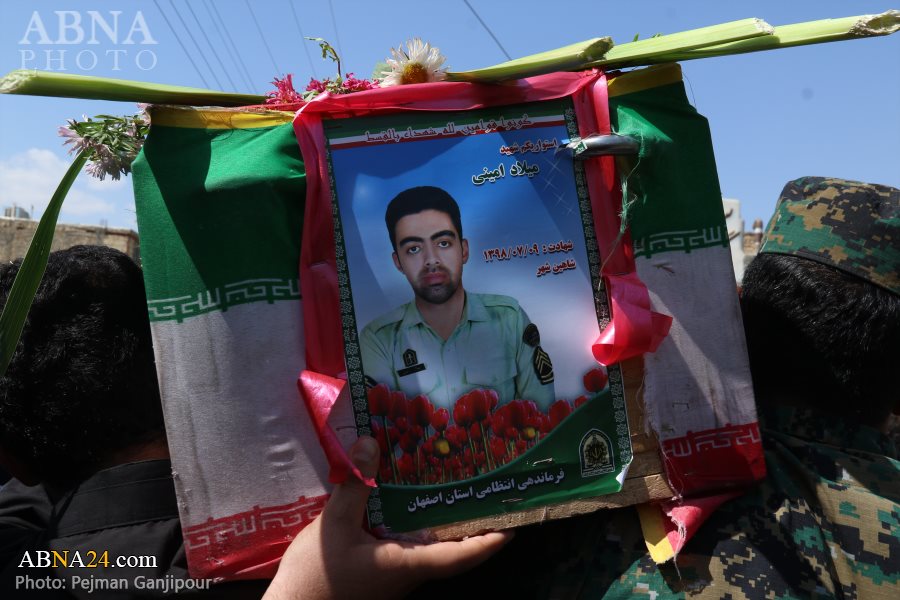 به گزارش خبرگزاری اهل‌بیت(ع) ـ ابنا ـ پیکر مطهر شهید استوار یکم "میلاد امینی" که در شاهین شهر اصفهان در درگیری با اشرار مسلح به شهادت رسید، امروز پنج شنبه ۱۱ مهر ۱۳۹۸ در نخستین روز هفته نیروی انتظامی با حضور نیروی های نظامی و انتظامی و مردم شهید پرورشهر "درچه" اصفهان تشییع و در زادگاهش محله "ولاشان" به خاک سپرده شد.