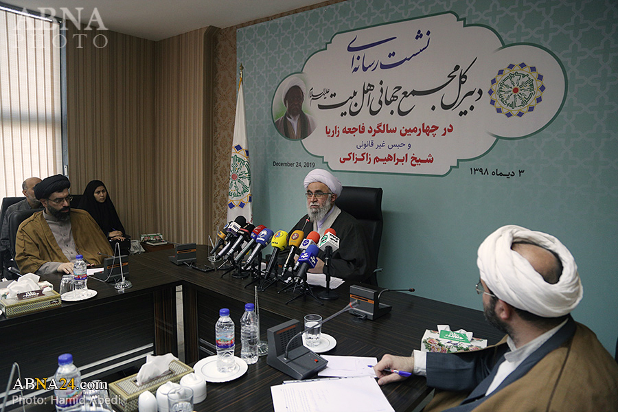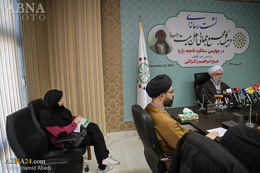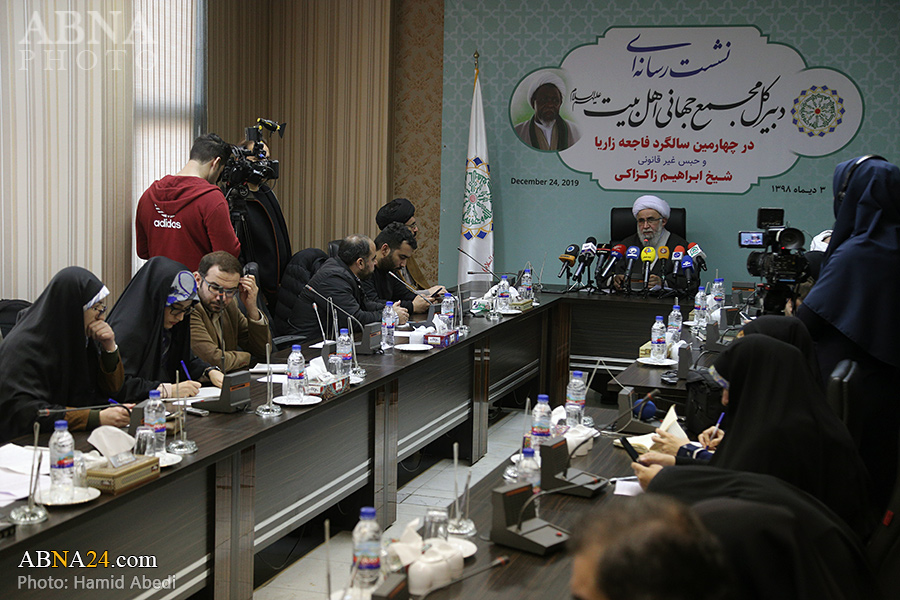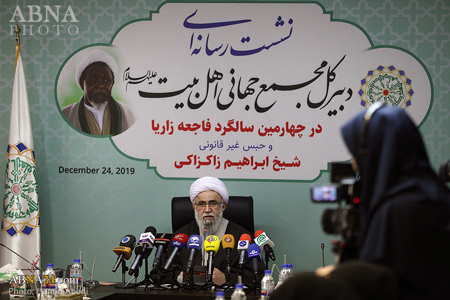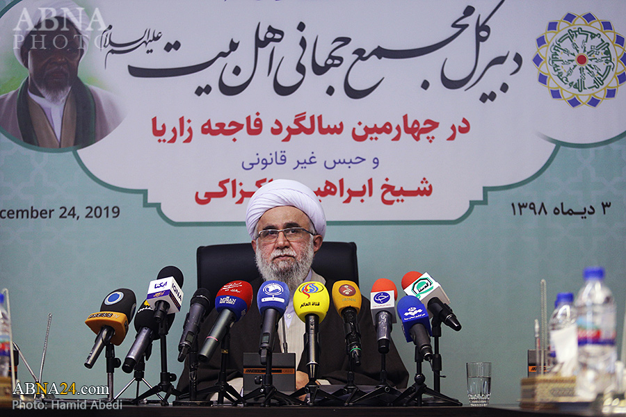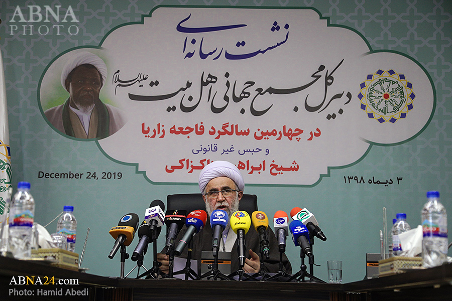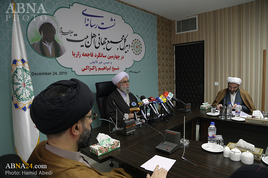 به گزارش خبرگزاری اهل‌بیت(ع) ـ ابنا ـ به مناسبت چهارمین سالگرد فاجعه کشتار شیعیان نیجریه در شهر زاریا و نیز استمرار وضعیت جسمی نامناسب حجت الاسلام شیخ «ابراهیم زاکزاکی» شخصیت مصلح تقریبی، عضو نیجریه ای مجمع عمومی مجمع جهانی اهل بیت(ع) و رهبر جنبش اسلامی شیعیان نیجریه، نشستی رسانه ای با حضور دبیرکل مجمع جهانی اهل‌بیت(ع) برگزار شد. آیت الله «رضا رمضانی» در این نشست خبری که پیش از ظهر امروز سه شنبه 3 دی 1398 در تهران برپا گردید، درباره حبس غیر قانونی شیخ زاکزاکی و نقض مکرر حقوق بشر در حق او، خانواده و پیروانش با رسانه ها صحبت کرد و از سازمانهای جهانی مدعی حقوق انسان خواست که به وظیفه خود در این زمینه عمل کنند.