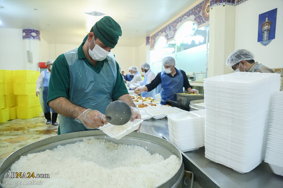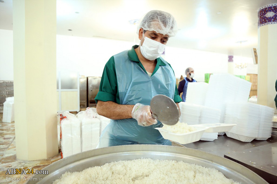 به گزارش خبرگزاری اهلبیت(ع) ـ ابنا ـ شیوع ویروس جدید کرونا نیز نتوانست مانع از کرامت کریمه اهل بیت(ع) شود. این روزها در ماه مبارک رمضان، روزانه 6 هزار پرس افطاری تبرکی با تلاش بیش از 80 نفر از خادمان آستان مقدس کریمه اهلبیت حضرت فاطمه معصومه(س) در قالب رزمایش «کمک مؤمنانه، ضیافت کریمانه» برای توزیع در میان مناطق محروم، در مهمانسرای حرم مطهر حضرت معصومه(س) پخته و بستهبندی میشود. عوامل این پخت و پز، پیش از آغاز به کار مورد تست سلامتی قرار می گیرند.