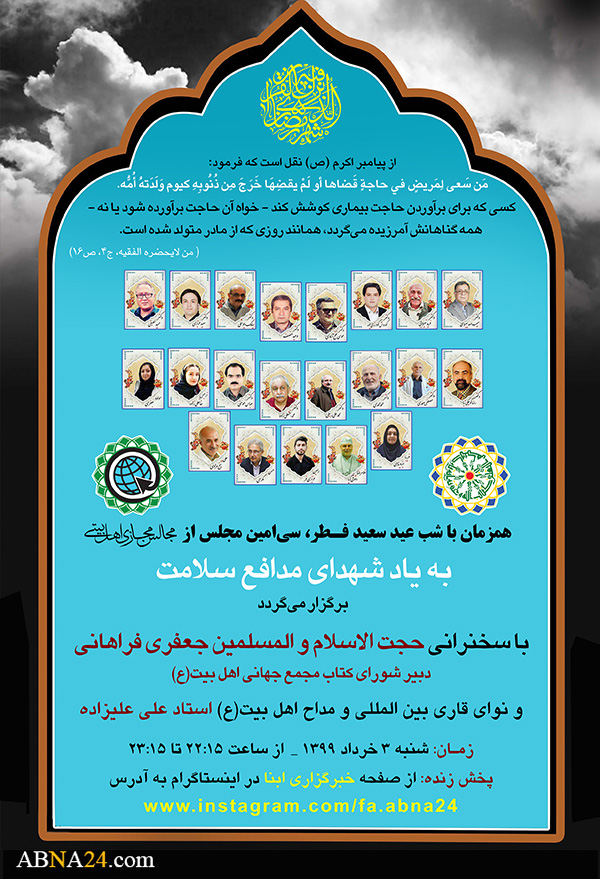 به گزارش خبرگزاری اهل بیت(ع) ـ ابنا ـ شیوع ویروس جدید کرونا (Covid-19) در جهان، از یک سو موجب تعطیلی همه اجتماعات انسانی گردیده و برگزاری مراسم دینی به شکل مجازی را ایجاب کرده است. از سوی دیگر، در دو ماه اخیر تعدادی از علمای اعلام، چهره های شاخص، مرتبطین مجمع جهانی اهل بیت(ع) و نیز تعداد زیادی از کادر فداکار پزشکی و بهداشتی دار فانی را وداع گفتند؛ اما به دلیل شرایط کرونایی، امکان برگزاری مراسم ترحیم حضوری و عادی برای آنها ایجاد نشد. «اداره کل فناوری اطلاعات و اطلاع رسانی» مجمع جهانی اهل بیت(ع) و «خبرگزاری ابنا» با برگزاری مجالس مذهبی به شکل مجازی در شبهای ماه مبارک رمضان، این دو خلأ را تا حدودی مرتفع نمودند. تصاویر زیر مربوط به مجلس سی ام از «مجالس مجازی اهل بیتی» با سخنرانی حجت الاسلام والمسلمین «عباس جعفری فراهانی» دبیر شورای کتاب مجمع جهانی اهل بیت(ع) است که شامگاه روز شنبه 3 خرداد 1399 مصادف با شب عید سعید فطر 1441 برگزار شد. در این مجلس که به یاد "شهدای مدافع سلامت" برپا گردید و آخرین مجلس مجازی در ماه مبارک رمضان بود، پیش از سخنان آقای جعفری فراهانی، استاد «علی علیزاده» قاری بین المللی آیاتی از قرآن کریم را قرائت کرد.